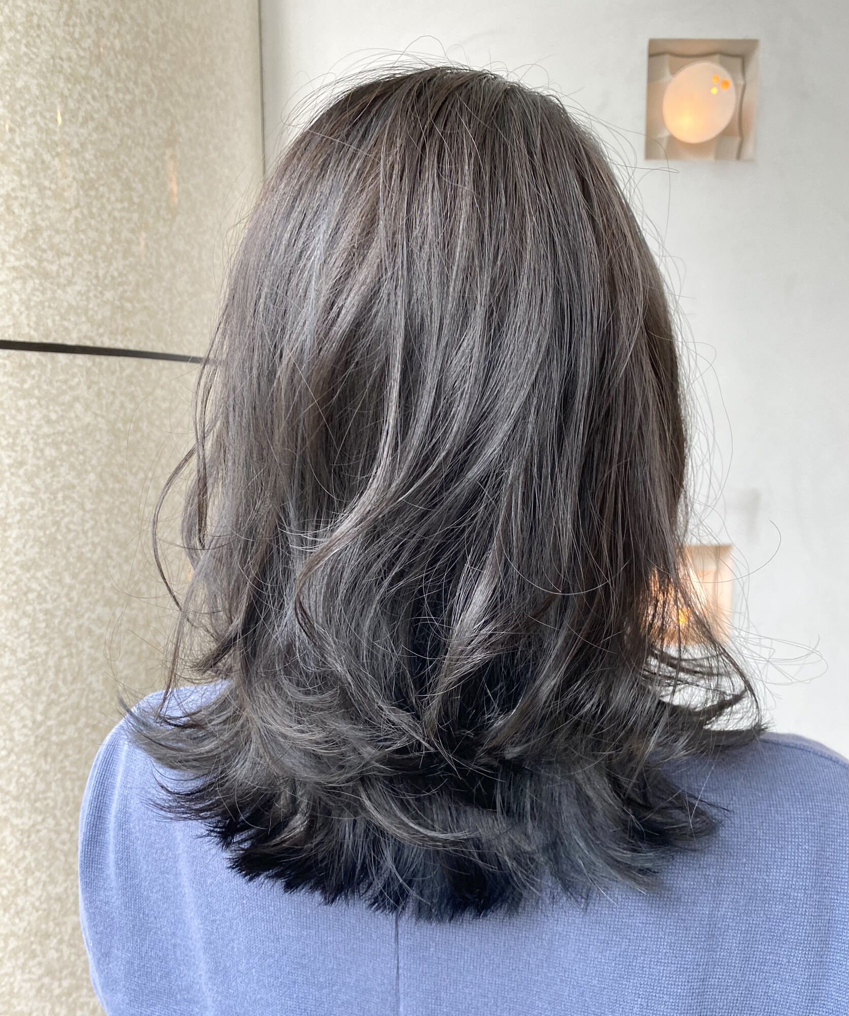 【伸ばしかけにもオススメ】ワンカール外ハネレイヤー・ブルージュカラー