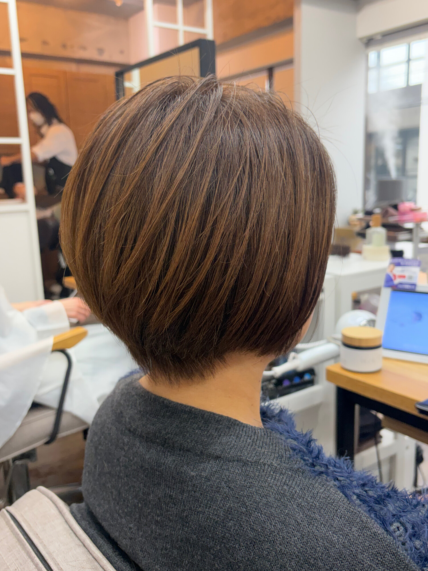 暗い白髪染めから月日をかけ明るい白髪染めショートにしました。時間はかかるけど必ずお好みの明るい白髪染めショートへできます!