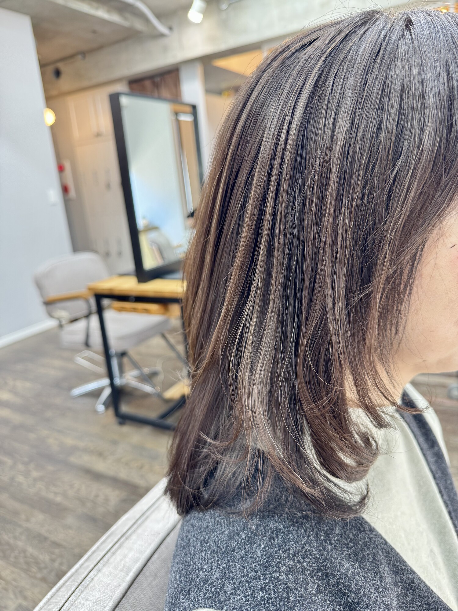 ロングヘアで若返りはレイヤーカットが必要です。顔周りの動き、毛先の毛流れシルエットです。