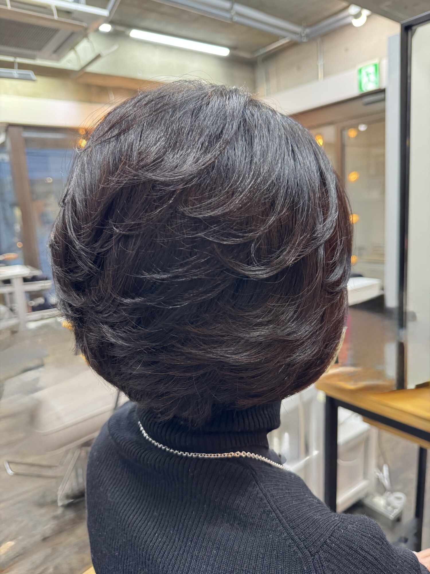 ご来店ありがとうございます。ボブをエレガントにするにはたっぷりレイヤーカット!前髪からレイヤーを顔周りに入れてトップにも入れてワンカールをつけるとエレガントなボブヘアーに。